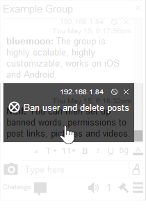 If you are moderating a fast group the easy ban mode allows you to ban a user and delete all their messages with one click. To turn on easy ban you must be the owner or a moderator, click Moderation menu Turn On Easyban.